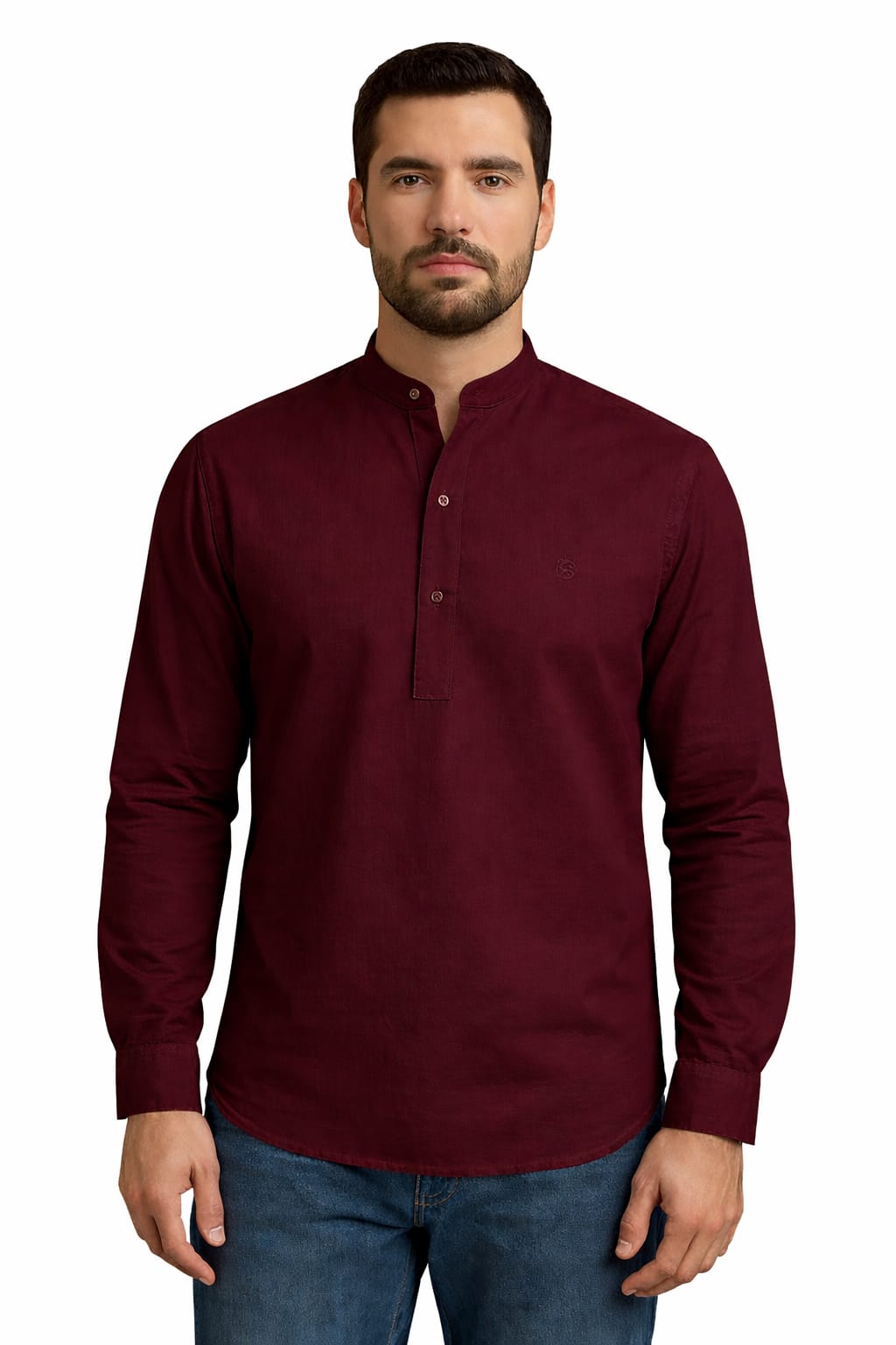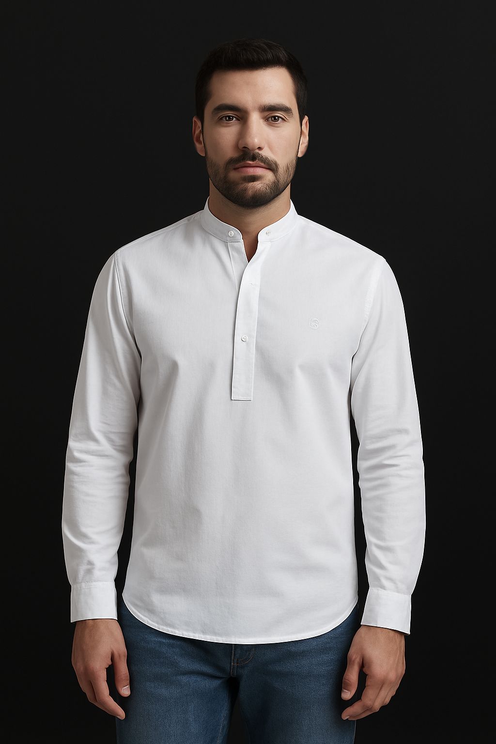 Camisa com modelagem slim, confeccionada em tricoline acetinada, oferecendo conforto, leve brilho e ótimo caimento. O modelo bata francesa com gola padre garante um visual moderno e elegante, ideal para ocasiões casuais e sociais.