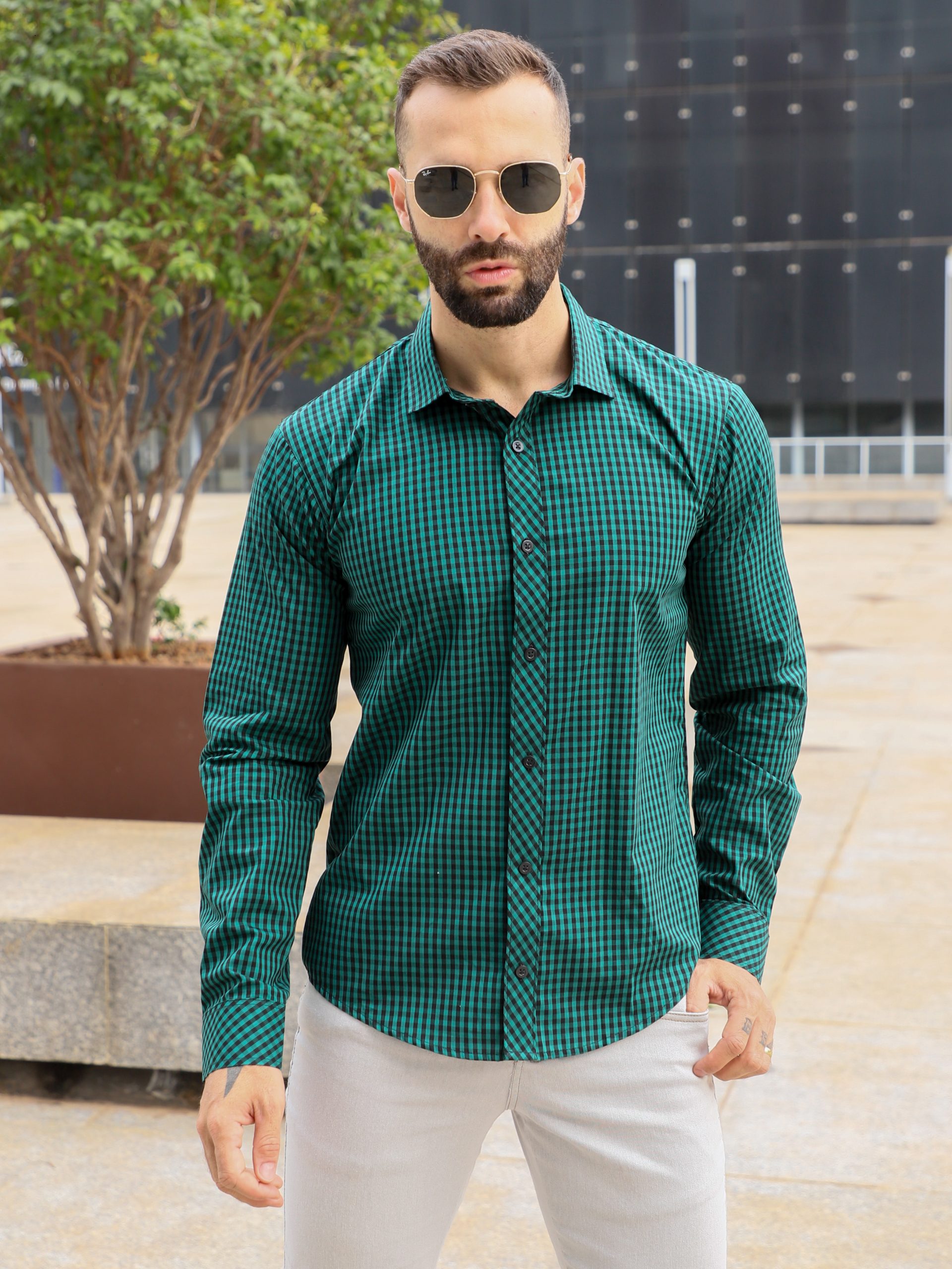 Confeccionada em 100% algodão, com modelagem slim e estampa xadrez clássica. Conforto, qualidade e estilo para o dia a dia.